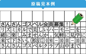 祝日がある月は、原稿の締切日が早くなりますので、その都度、さんさんの紙面でご連絡いたします。